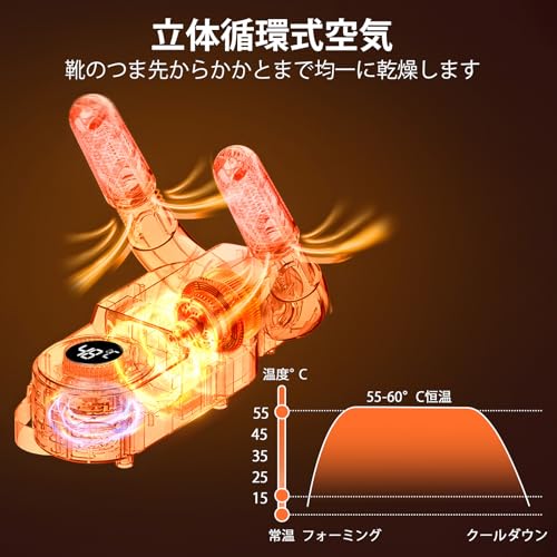 - 【تجفيف فعال مع مؤقت】تم تصميم مجفف الأحذية الذكي هذا لحل مشكلة الأحذية المبللة بسهولة. نظام دوران الهواء الساخن ستيريو 360 درجة يسمح للأحذية بالجفاف بسرعة دون الانتظار لفترة طويلة. مع مؤقت 0-120 دقيقة، يمكنك إعداد ما يصل إلى 120 دقيقة