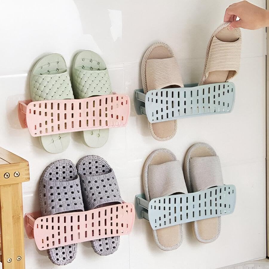 Generic - منظم أحذية ورف مضغوط قابل للطي ومثبت على الحائط مع شرائط لاصقة لتوفير المساحة والحفاظ على الأحذية مرتبة وسهلة الوصول (خيار 1، 4 قطع)