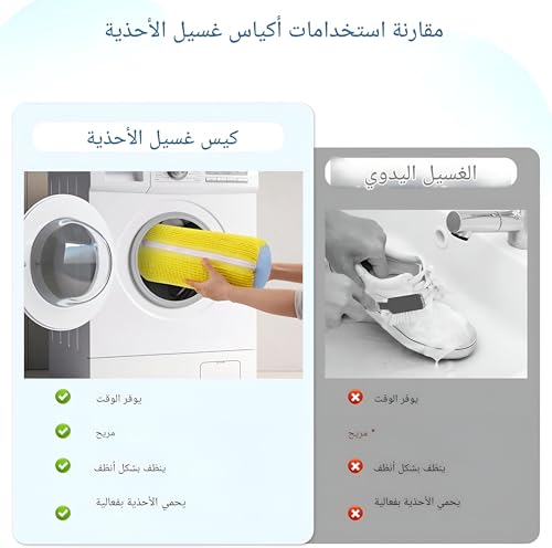 - مصمم للاستخدام بدون مجهود، ببساطة ضع حذائك بالداخل، وقم بسحبه بإحكام، ثم ضعه في الغسالة - لا يتطلب أي جهد يدوي، مما يجعل تنظيف الأحذية سريعًا وخاليًا من المتاعب.