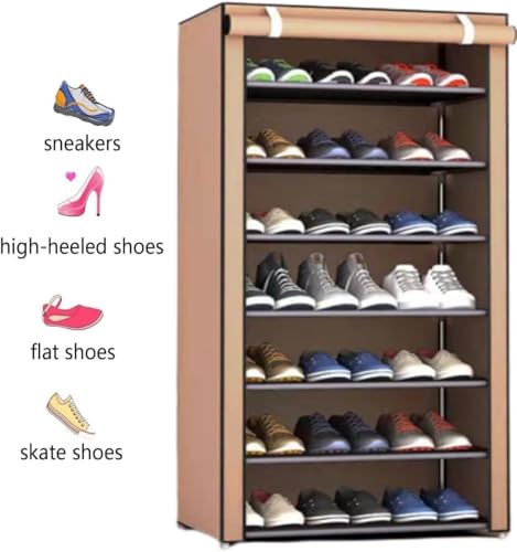 Generic - رف احذية انيق من 7 طبقات، رف احذية لتخزين الاثاث في المدخل مع غطاء من القماش غير المنسوج المقاوم للغبار، ارفف مفتوحة مثالية لتنظيم الاحذية