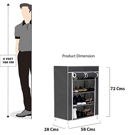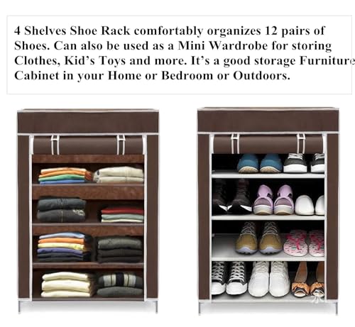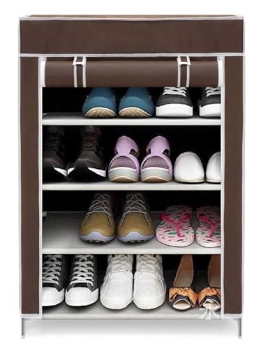 Spaceshoop - جزامة لتنظيم أحذية للمنزل مزودة بغطاء مكون من 5 طبقات ، رف تخزين متعدد الأغراض مع غطاء مقاوم للغبار وخزانة ملابس وأنابيب بلاستيكية قماش غير منسوج | حامل تشابال 4 أرفف بني