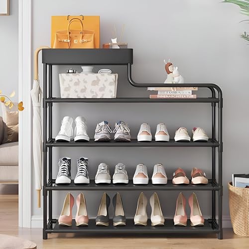 - سعة كبيرة تحمل 12-16 زوجًا من الأحذية بأي نمط - بدءًا من الأحذية ذات الكعب العالي والطويلة إلى الصنادل - وتضيف السلة العلوية مساحة إضافية للشنط أو الألعاب أو المناشف، مما يجعلها مثالية لكل من الرجال والنساء الذين يحتاجون إلى تخزين منظم للأحذية.