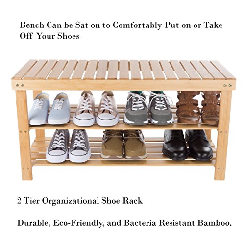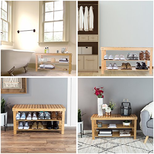 Lavish Home - مقعد تخزين أحذية من البامبو بطبقتين مخصص لتنظيم وتخزين غرفة المدخل مع مقعد خشبي طبيعي مناسب للأحذية الطويلة والأحذية الرياضية من لافيش هوم