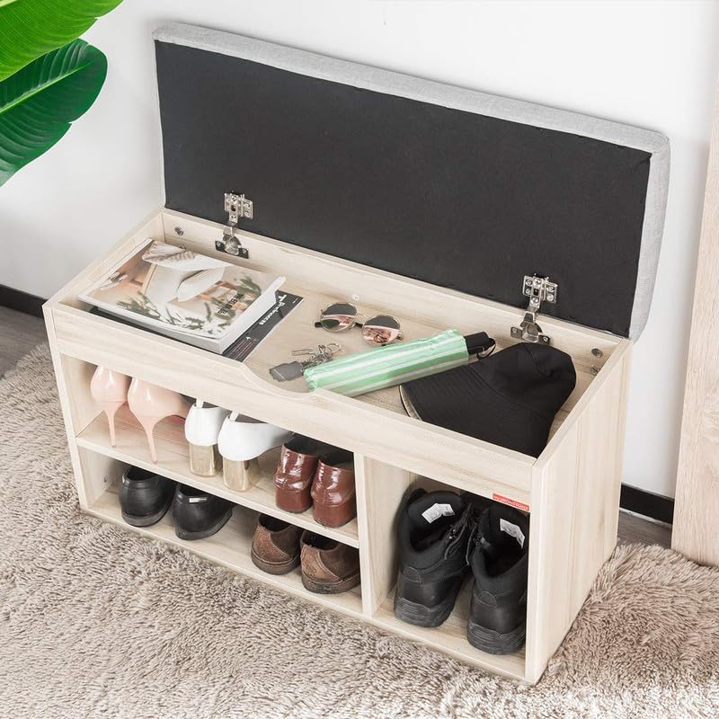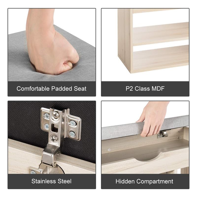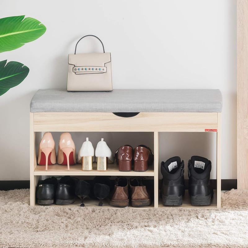 - هيكل قوي من خشب ليفي متوسط الكثافة: يوفر الإطار الخشبي المصمم هندسيًا متانة طويلة الأمد وقاعدة ثابتة للجلوس وتنظيم مجموعة أحذيتك.