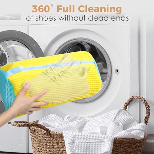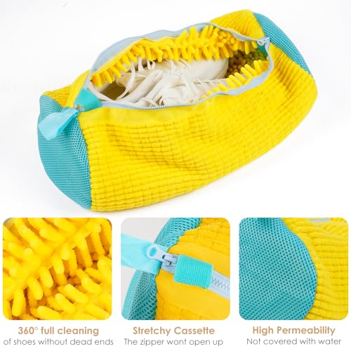 TJYAEKLTD - كيس غسيل الأحذية للغسالة، شبكة غسيل الأحذية، عبوة من قطعتين من كيس الأحذية للغسالة، كيس غسيل الأحذية مع كيس غسيل لزيادة الاحتكاك الداخلي، (لون أصفر)