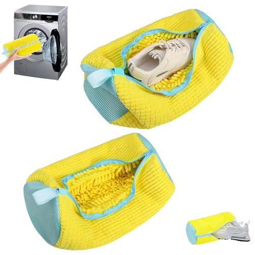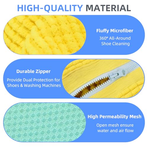 UGTUGT - شنطة غسيل الاحذية للغسالة، مصنوعة من الالياف المنفوشة تحافظ على التنظيف 360 درجة، شنطة غسيل الاحذية للغسالة والمجفف، شنطة غسيل احذية قابلة لاعادة الاستخدام بسحاب غير مرئي لجميع الاحذية