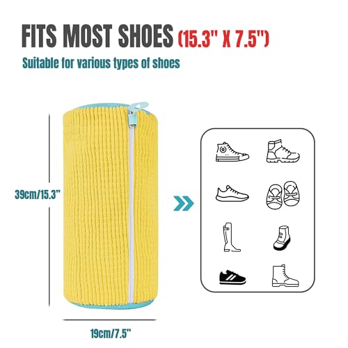 - 【تناسب معظم الأحذية ومتعددة الاستخدامات】 مقاس كبير 15.7 انش × 7.8 انش، هذه الشنطة تناسب بشكل مريح معظم الأحذية الرياضية والأحذية الكاجوال وأحذية الأطفال. حلقة التعليق المريحة تجعل التجفيف بالهواء سهلاً. كما أنها مثالية لتنظيم الأحذية في أمتعتك أو تخزينها في غير موسمها.