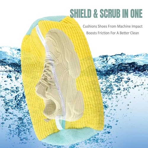 - 【تنظيف عميق 360 درجة بدون تلف】 قل وداعًا للتنظيف اليدوي! تسمح حقيبتنا الشبكية عالية النفاذية بتدفق الماء والمنظفات بحرية، بينما ينظف الجزء الداخلي المخملي الناعم كل زاوية من حذائك بلطف. يمنع بشكل فعال الخدوش القبيحة وبهتان اللون والتشوه، مما يحافظ على حذائك الرياضي يبدو جديدًا تمامًا.