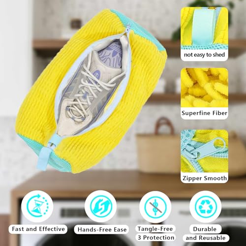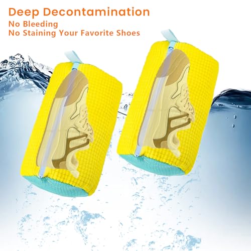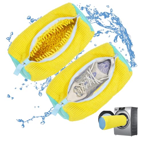 AngKng - شنطة غسيل الاحذية انجكينغ متينة وقابلة لاعادة الاستخدام للغسالة والمجفف، شنطة غسيل شبكية لجميع انواع الاحذية ومقاساتها (قطعتان، اصفر)