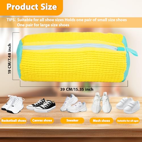 KRYVONTA - شنطة غسيل الاحذية لغسالة الملابس والمجفف قابلة لاعادة الاستخدام ومتينة بسحاب واي كيه كيه لجميع مقاسات الاحذية، بديل للغسيل اليدوي لحماية حذائك (اصفر، قطعتان)، اصفر، 15.3 انش