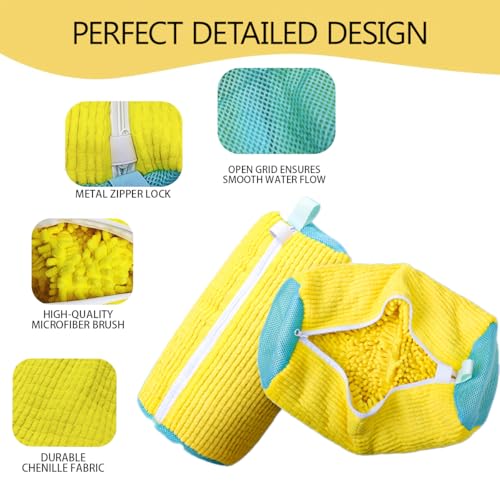 - تنظيف عميق 360 درجة للأحذية: مع الآلاف من خيوط الشانيل المصنوعة من المايكروفايبر مقاس 1 انش، تضمن حقيبة غسالة الأحذية الخاصة بنا تجربة تنظيف كاملة ولطيفة في الغسالة. ينظف بعمق مع الحفاظ على سلامة حذائك. لا مزيد من التنظيف القاسي - فقط دع الجهاز يقوم بالعمل! مصممة لتكون حقيبة غسيل الأحذية المثالية