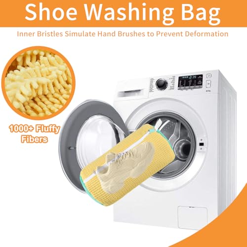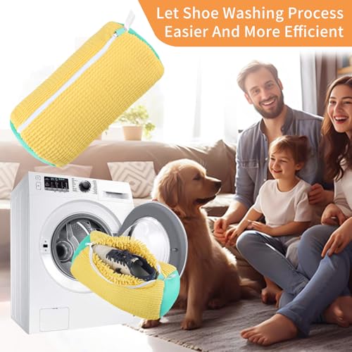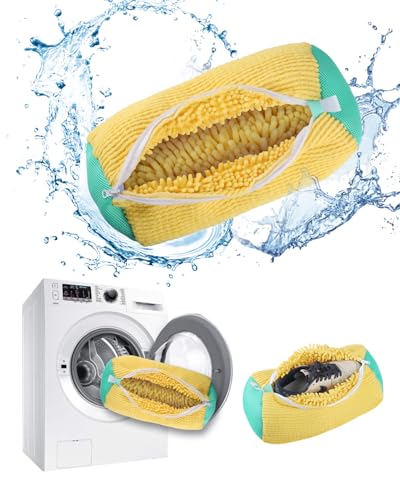 feryu - شنطة غسيل الأحذية من فيريو، شنطة غسيل أحذية قابلة لإعادة الاستخدام وقابلة للتعليق للغسالة والمجفف، شنطة أحذية للغسالة لجميع أنواع وأحجام الأحذية. (قطعة واحدة باللون الأصفر)