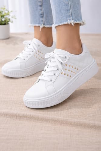 Generic - شوز حريمي سنيكرز أبيض ترندي كوتشي نسائي كاجوال مريح بتفاصيل ذهبية أنيقة حذاء عملي للخروجات اليومية من كيان للتجارة والتوزيع كود 5001 (بيور وايت, 41)