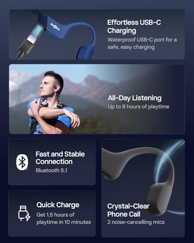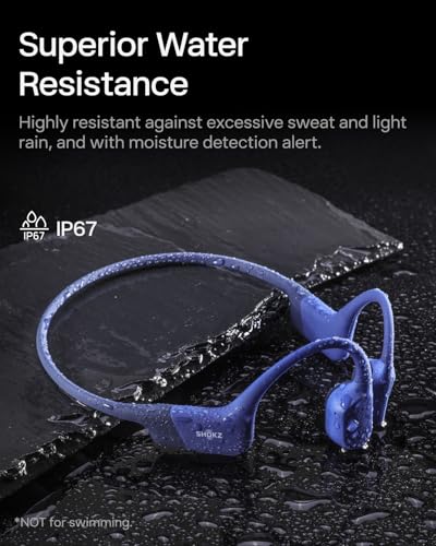 SHOKZ - سماعات للرأس اوبن رن، سماعات أذن رياضية بتصميم مفتوح الأذن وبلوتوث وميكروفون، مقاومة للماء بمعيار IP67، لاسلكية للجري والتمارين، مع وقت تشغيل يصل إلى 8 ساعات بمنفذ USB نوع سي من شوكز، أزرق