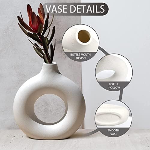 Ceramic Shop - مزهرية حلقية بيضاء من سيراميك شوب | مزهرية زهور | مزهرية عشب البامباس | مزهرية دائرية الشكل | قطعة مركزية لديكور المنزل | مزهرية دونات - (مجموعة من 3 قطع) 8.6 و4 انش