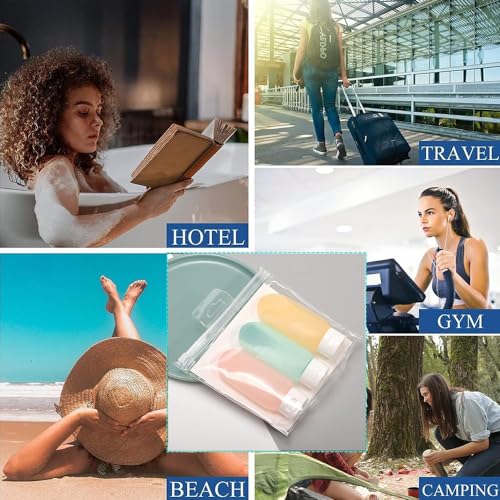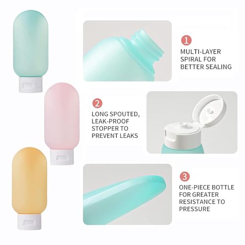 - 【كمية كافية】 زجاجات السفر لأدوات التجميل تتضمن 3 قطع مع مجموعة زجاجات سفر بألوان مختلفة. جميع ملحقات السفر معبأة في شنطة عملية، تناسب أي مساحة صغيرة وسهلة الحمل أثناء التنقل وتوفر مساحة أدوات الزينة الخاصة بك.