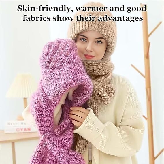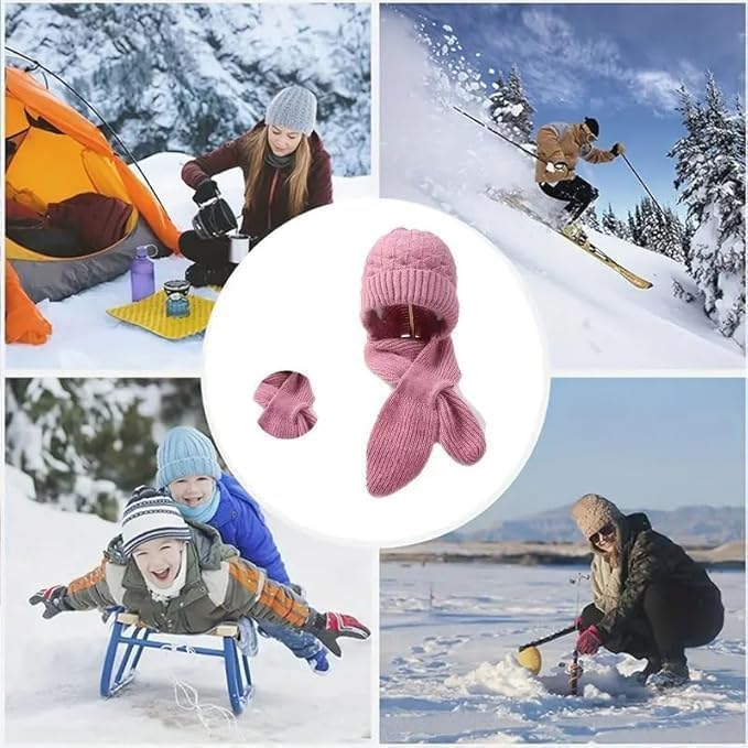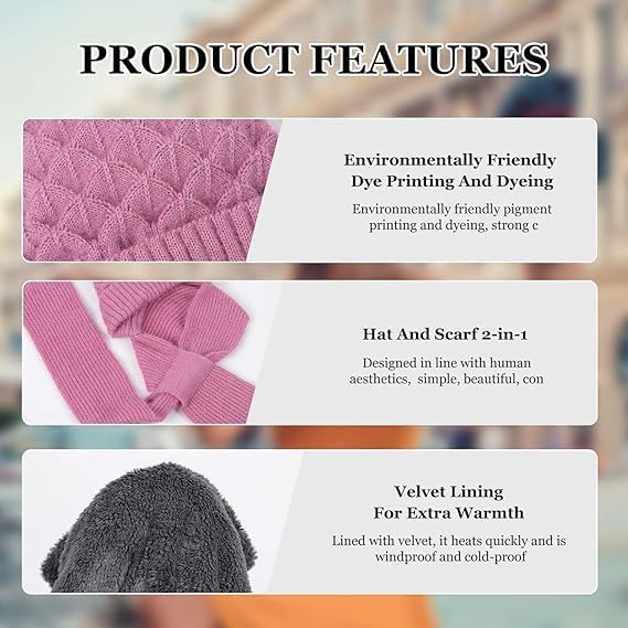 ShopBridge - سكارف 2 في 1 مقاوم للرياح مع طاقية مدمجة توفر حماية للأذنين من شوب بريدج، ناعم ومبطن بالقطيفة للتدفئة، طاقية محبوكة بنمط بونيه للشتاء مع سكارف صوف لطيف بفرو أنيق، غطاء رأس عصري للبنات
