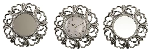 - ساعة حائط بلاستيكية مزخرفة من شوبيجاتور مع مرآتين لتزيين الحائط لغرفة المعيشة - مجموعة من 3 قطع (فضية)