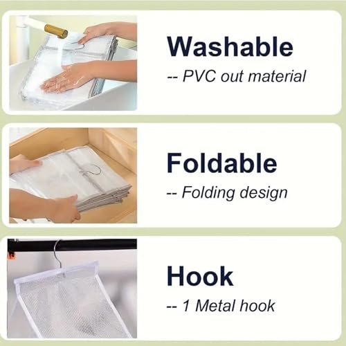 - تصميم قابل للطي: صندوق التخزين المنظم قابل للطي، مما يسمح بالتخزين والنقل بسهولة عند عدم الاستخدام، الشماعة تحتوي على خطاف معلق من الأعلى حتى نتمكن من تحريكه بسهولة.