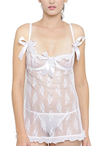 Shoppingara - فستان ليلي بيبي دول شفاف برقبة عميقة من نسيج البوليستر من Shoppingara للسيدات مع G-String