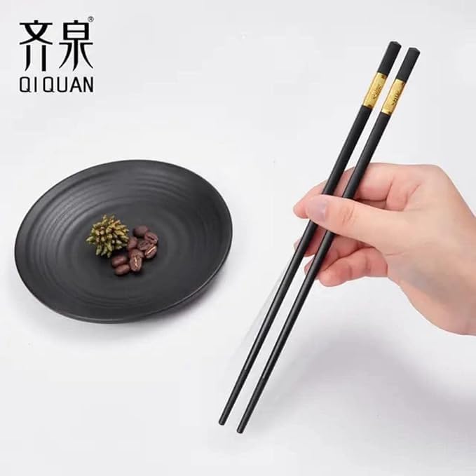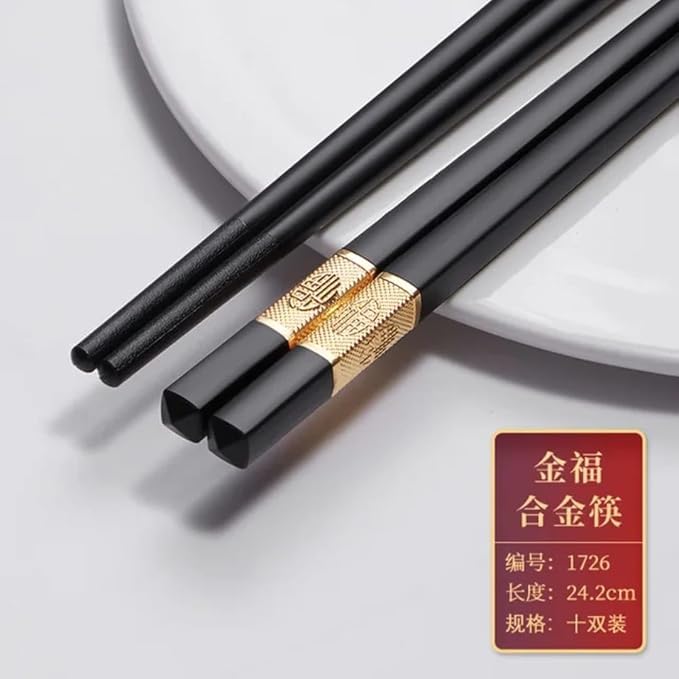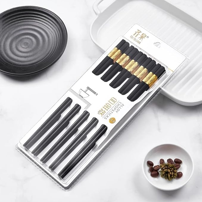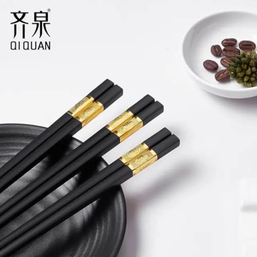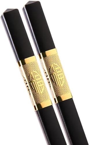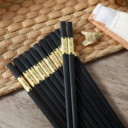 Generic - عيدان طعام صينية فاخرة من خشب الابنوس من شوب ستيكس، ديكور معدني صحي طبيعي غير قابل للانزلاق، هدية لمحبي السوشي والنودلز والرامن والطعام الياباني الكوري، 5 ازواج (ذهبي)