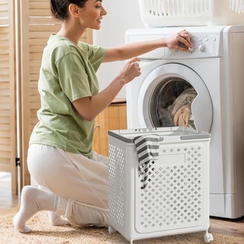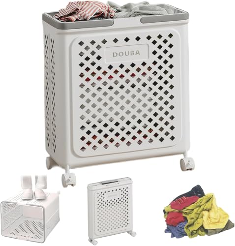 SHOPVILLA - سلة غسيل قابلة للطي بعجلات من شوبفيلا - سلة تخزين متعددة الاستخدامات للملابس، سلة غسيل بعجلات واغراض متنوعة - لتنظيم المنزل - مناسبة للحمام والشرفة وغرفة النوم