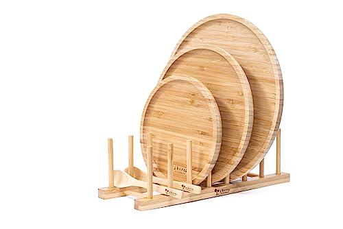 Shores Kitchenware - منظم حامل اطباق واغطية ادوات المطبخ من شورز (7 فتحات)، بامبو، بني