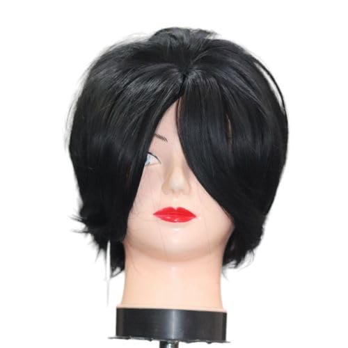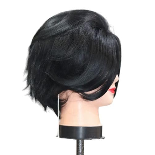 Generic - شعر مستعار صناعي قصير بطبقات بلون اسود مع غرة جانبية وقصة بيكسي