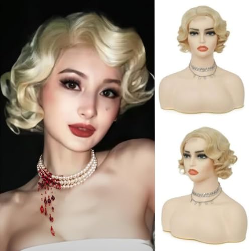 Generic - باروكة للشعر قصيرة ومجعدة للنساء طراز jw266- N 24، شعر صناعي مستعار بطبقات طبيعية ومقاومة للحرارة، مناسب للاستخدام اليومي، أشقر (اش بلوند)