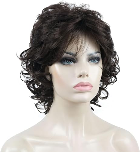Generic - باروكة شعر مستعار كامل صناعي قصير مجعد للنساء (لون بني غامق )