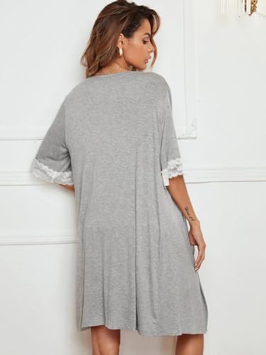 Generic - ثوب نوم قصير مع روب بحواف من الدانتيل، مقاس واحد