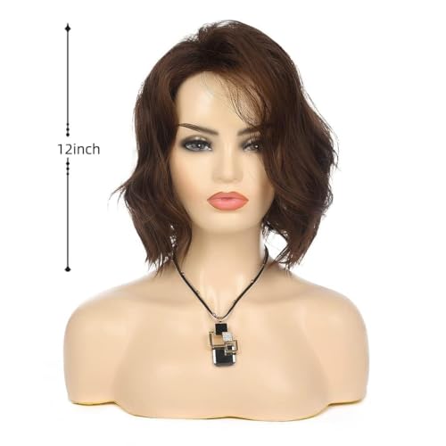 Generic - باروكة بوب قصيرة مموجة ومجعدة بطول متوسط يتراوح بين 28 إلى 32 سم مع فرق جانبي ومصنوعة من ألياف صناعية بمظهر طبيعي للاستخدام اليومي والحفلات موديل JW327-N 10، لون بني متدرج بخصلات هايلايت