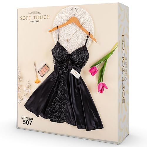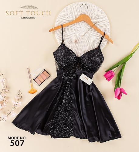 Soft Touch Lingerie - روب قصير بيبي دول لانجري خامة حرير فستان ناعم قميص نوم لانجري قصير للنساء - مقاس واحد من50كيلو إلى 80كيلو (NO:507)