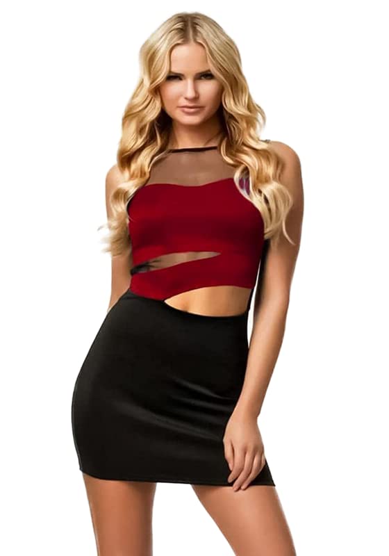 FG - فستان شيث قصير- لون احمر داكن واسود - مناسبه خاصة - نساء