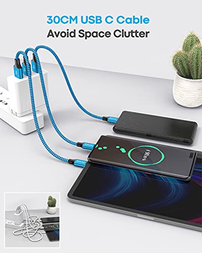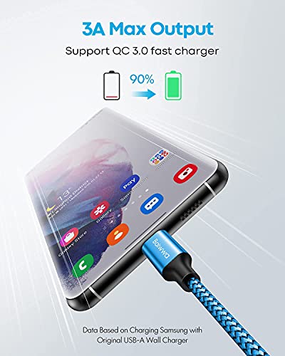 Baiwwa - كابل USB نوع سي قصير، شحن سريع 3 امبير، كابل مضفر USB نوع A إلى نوع C متوافق مع سامسونج جالاكسي S22 S22+ S21 S21+ S21 Ultra S20 S10 S9 Plus Note 20 A72 A71 A52 A51 A20 A11 من بايوا، 30 سم، 2 قطعة