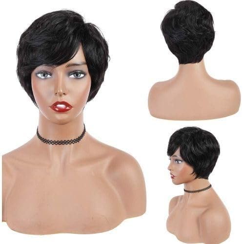 Generic - باروكة شعر قصيرة للنساء، شعر مستعار أسود، قصة بوب بطبقات، شعر صناعي طبيعي
