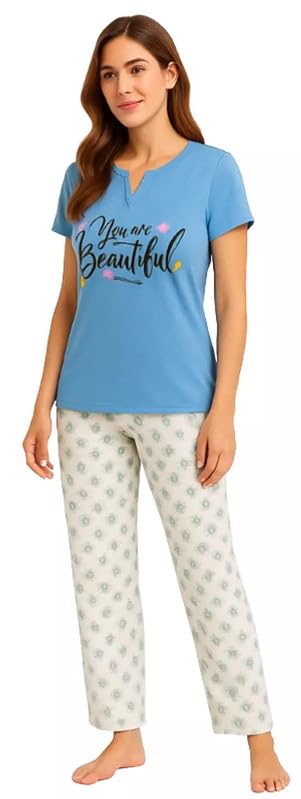 Shorto - طقم بيجامة قطن مطبوع جميل باكمام قصيرة للنساء من شورتو