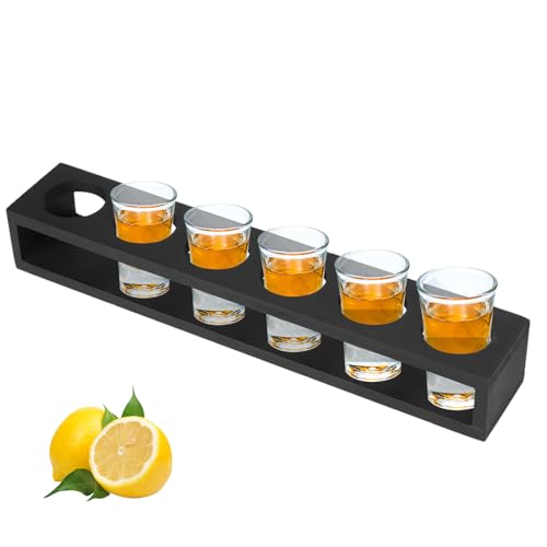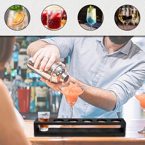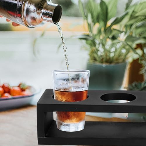 Cyrank - حامل كؤوس مشروبات، صواني تقديم أكواب خشبية مع 6 فتحات للمطاعم والمقاهي والحفلات (التصميم #1)