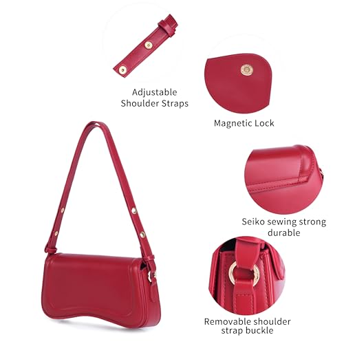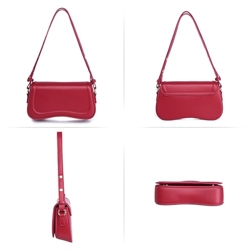 Generic - شنطة كتف - شنطة كروس انيقة من الجلد مع حزام قابل للتعديل للنساء والفتيات، مثالية للمناسبات الكاجوال والمكتب والنزهات المسائية، انيقة ومتينة (احمر)