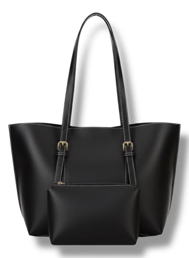 Generic - شنطة شولدر حريمي باللون الأسود بتصميم راقٍ يناسب الجامعة والعمل
