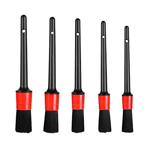 Showay - فرشاة تنظيف اجزاء السيارة مناسبة لتنظيف العجلات والجلد الداخلي والخارجي وفتحات التهوية والشعارات من جولي ميراكل، لون اسود ، 5 قطع