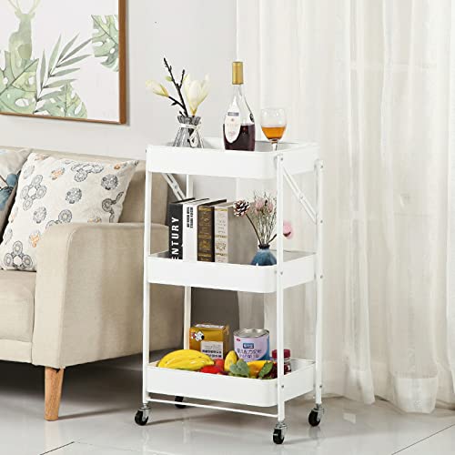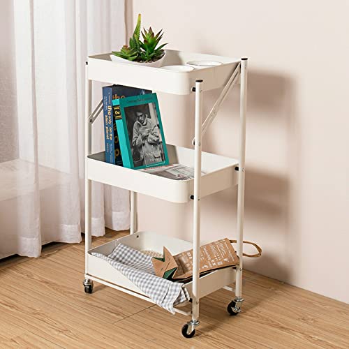 ruishetop - عربة معدنية متحركة قابلة للطي مكونة من 3 صفوف مع عجلات دوارة، سهلة التجميع وقابلة للطي، عربة تنظيم وتخزين متعددة الاستخدامات للمنزل والمكتب والمطبخ والأماكن الخارجية من شو واي (أبيض)