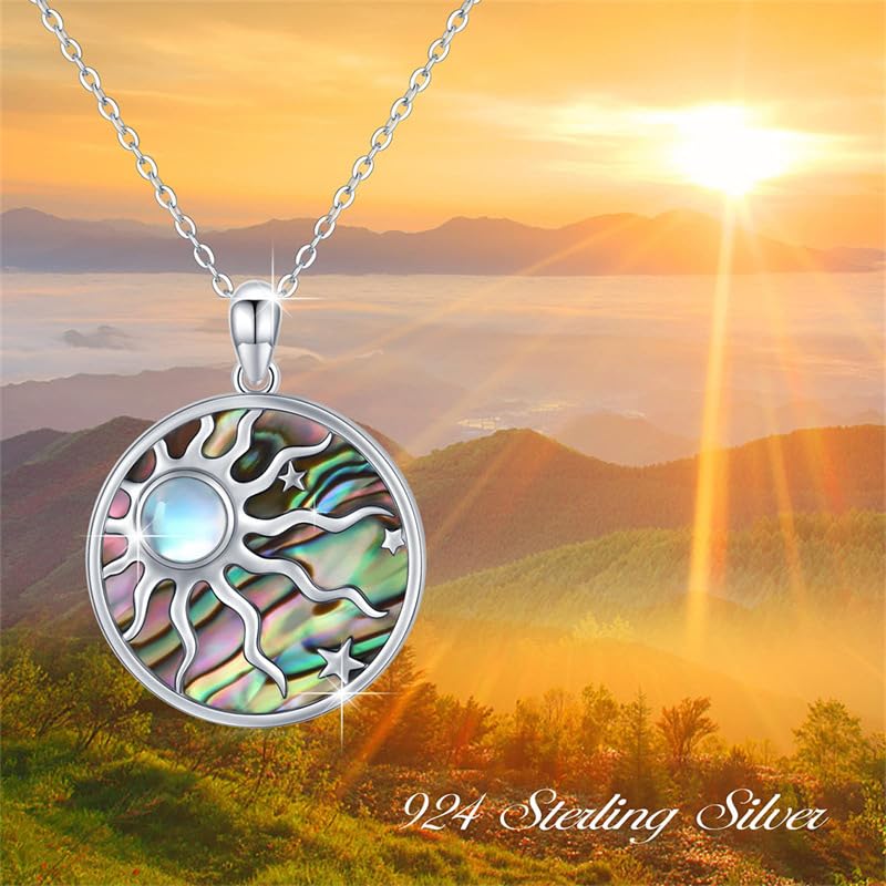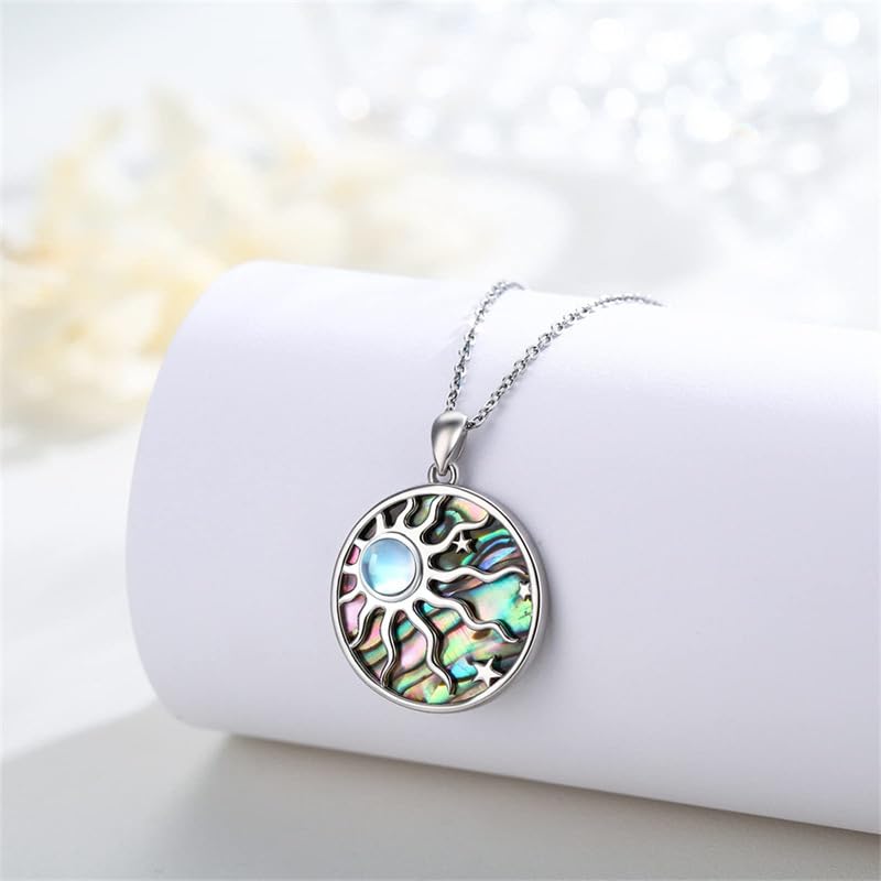 SHOWDAY - قلادة بدلاية على شكل صدفة أذن البحر والشمس للنساء من شو داي، قلادة فضية دائرية على شكل شمس ونجوم، هدية مجوهرات من عرق اللؤلؤ