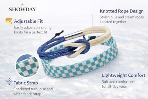 SHOWDAY - سوار حبل قابل للتعديل للرجال والنساء، سوار حبل معقود ملون مع حزام قماش، سوار معصم كاجوال عصري هدية مجوهرات من شو داي