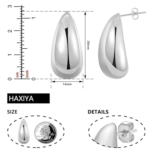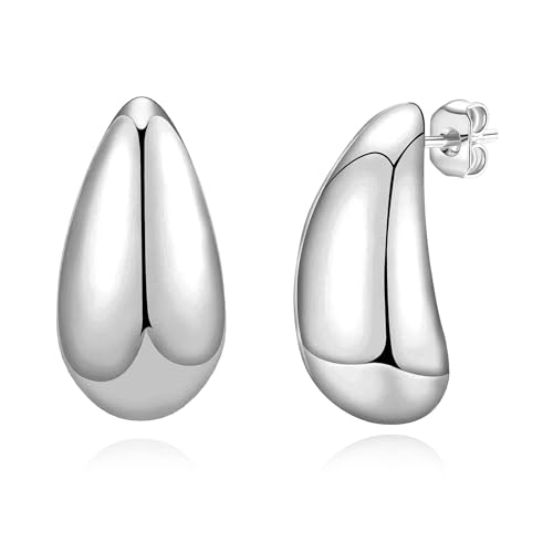 Generic - أقراط حلقية مكتنزة للنساء، خفيفة الوزن على شكل دمعة ومطلية بالذهب عيار 18 قيراط، لا تسبب الحساسية، سميكة بتصميم قطرة ماء كبيرة وبسيطة للكريسماس من شو داي