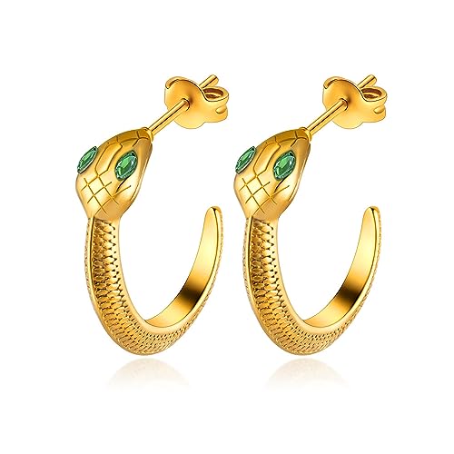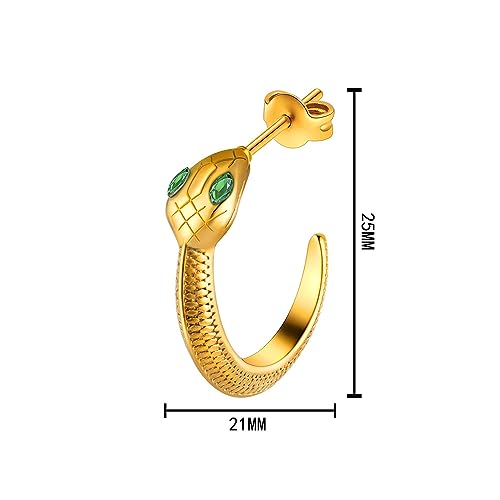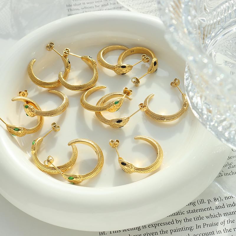 SHOWDAY - اقراط ذهبية انيقة على شكل ثعبان للنساء مطلية بالذهب عيار 18 قيراط من شو داي، اقراط حلقية صغيرة بتصميم ثعبان، اقراط حلقية صغيرة بتصميم ثعبان، مجوهرات على شكل ثعبان