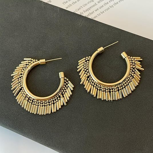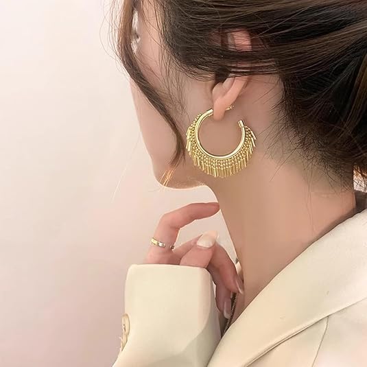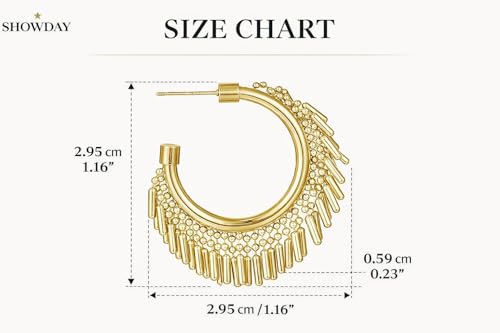 SHOWDAY - اقراط حلقية بشراشيب للنساء من شو داي، اقراط حلقية متدلية بشراشيب، مجوهرات بوهو عصرية للحفلات (ذهبي/فضي)
