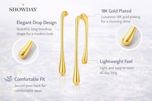 SHOWDAY - اقراط متدلية من الستانلس ستيل مطلية بالذهب للنساء من شو داي | تصميم عصري قطرة ماء سائلة | اقراط بريمة خفيفة الوزن ولا تسبب الحساسية للارتداء اليومي والسهرة