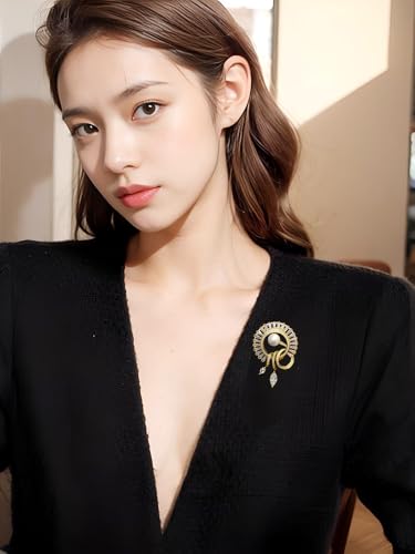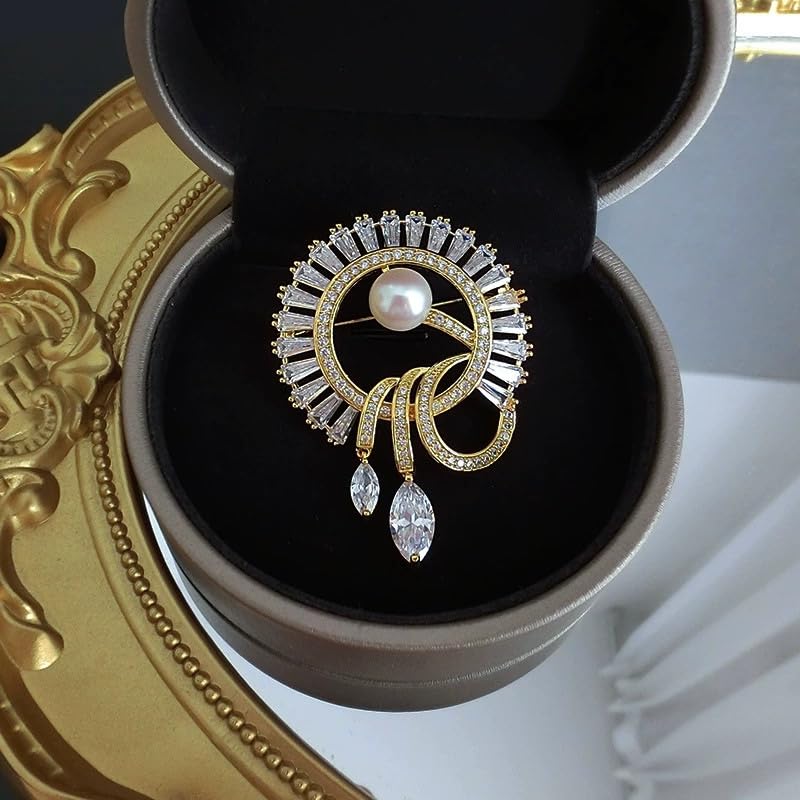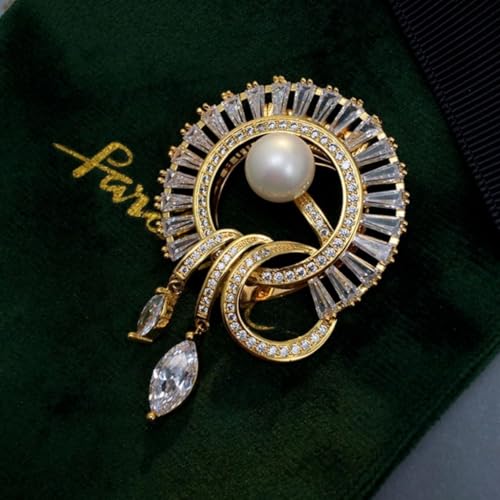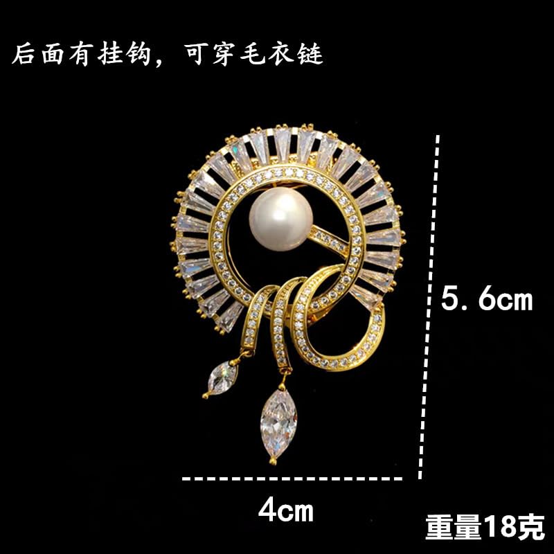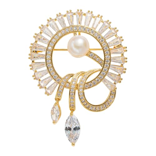 SHOWDAY - بروش لؤلؤ كريستالي فاخر للنساء من شو داي - دبوس طية صدر دائري انيق من حجر الراين مع دلاية متدلية، مجوهرات عصرية ذهبية وفضية للفساتين والاوشحة والمعاطف