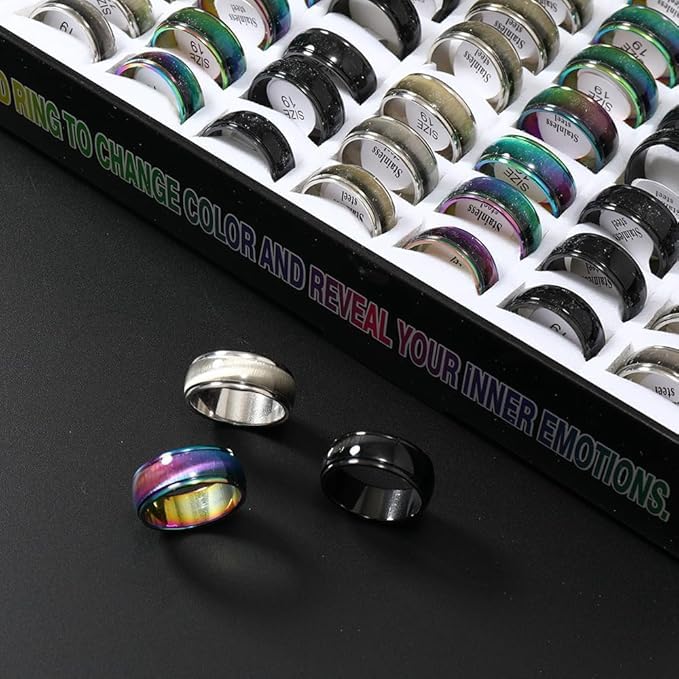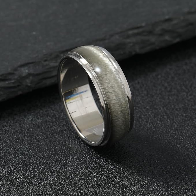 SHOWDAY - خاتم زفاف فاخر من الفولاذ مقاوم للصدأ للرجال من شو داي، خاتم رجالي 8 ملم أسود /فضي مع ترصيع من خشب الكوا/القيقب، خاتم زفاف خشبي للرجال والنساء